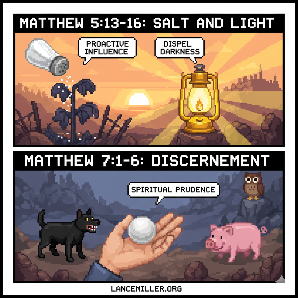 Analyzing the relationship between Jesus's commands in Matthew 5 (Salt/Light) and Matthew 7 (Judgment). Both passages illustrate that discipleship is not passive, but requires active engagement balanced by spiritual prudence.